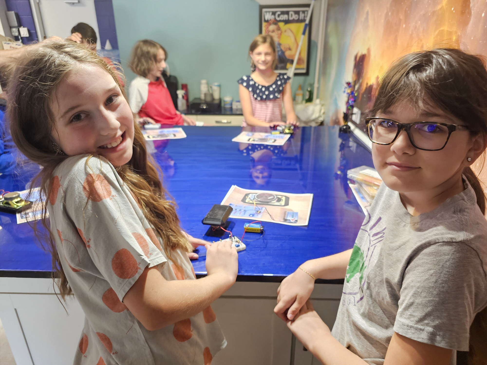 The day usually starts with gaming and we order pizza or subs for lunch and after lunch our technology session begins. We bring in local community professionals to teach for an hour and campers get to take home projects on some days. Our camp is a hit with kids and we keep the number limited to 20 max campers per day. Snacks and drinks are always on hand and lunch is an additional $5.